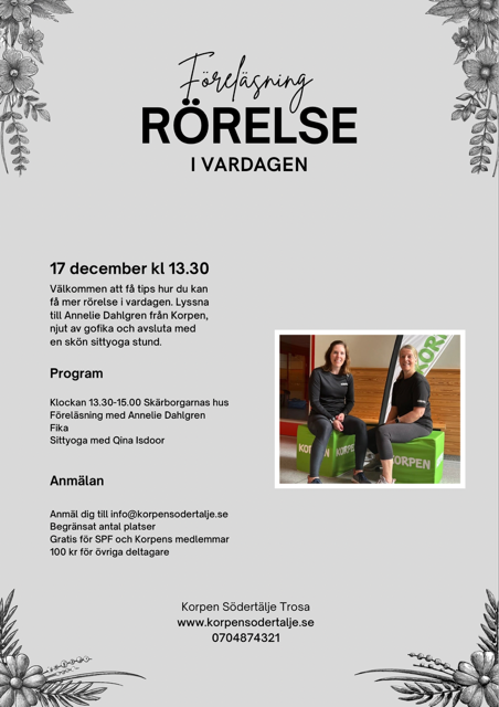 Onsdagen den 17 december klockan 13.30-15.00. Alla Korpens och SPF Trosas medlemmar deltar gratis och övriga betalar 100 kr.